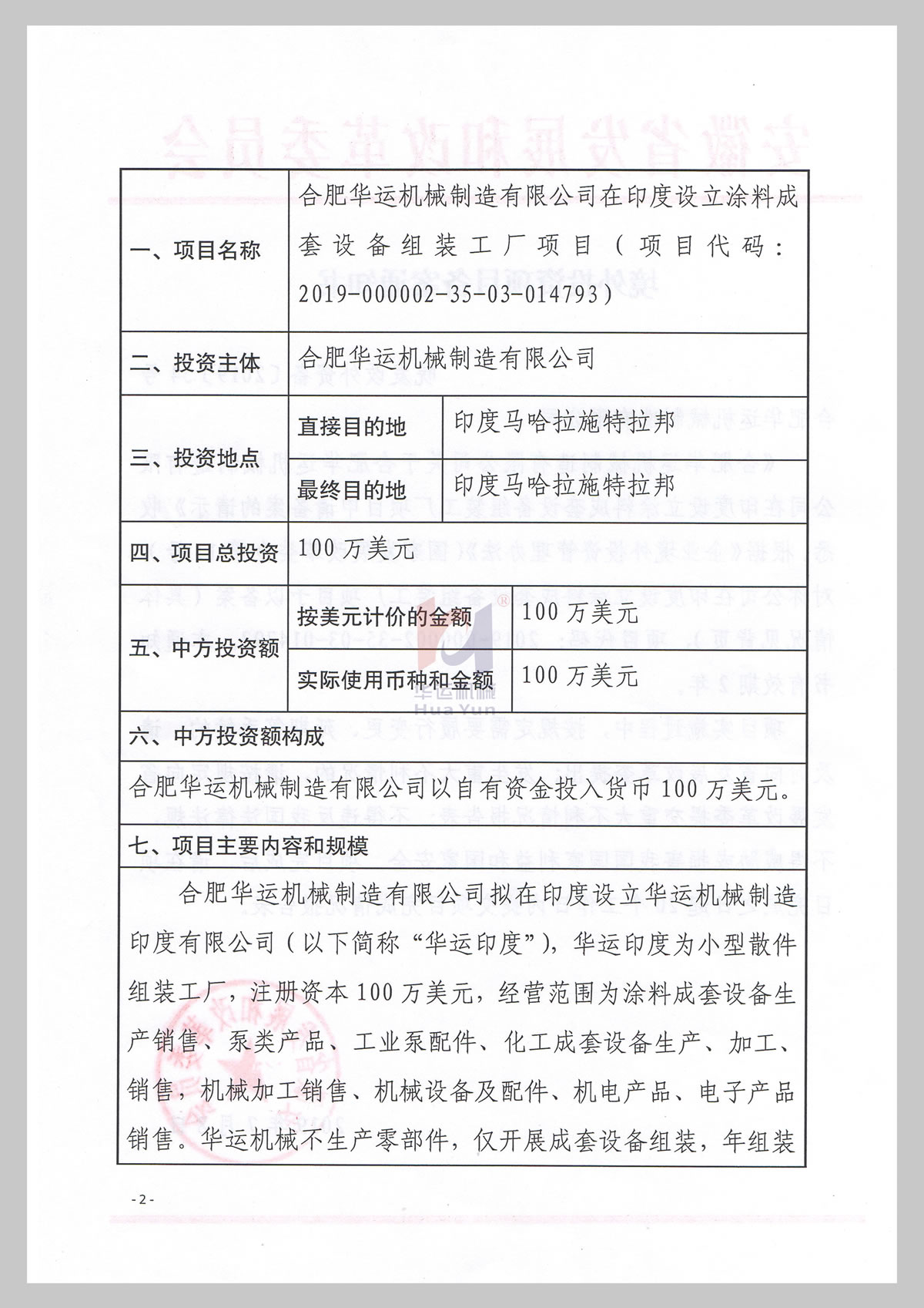 境外投资项目备案通知书